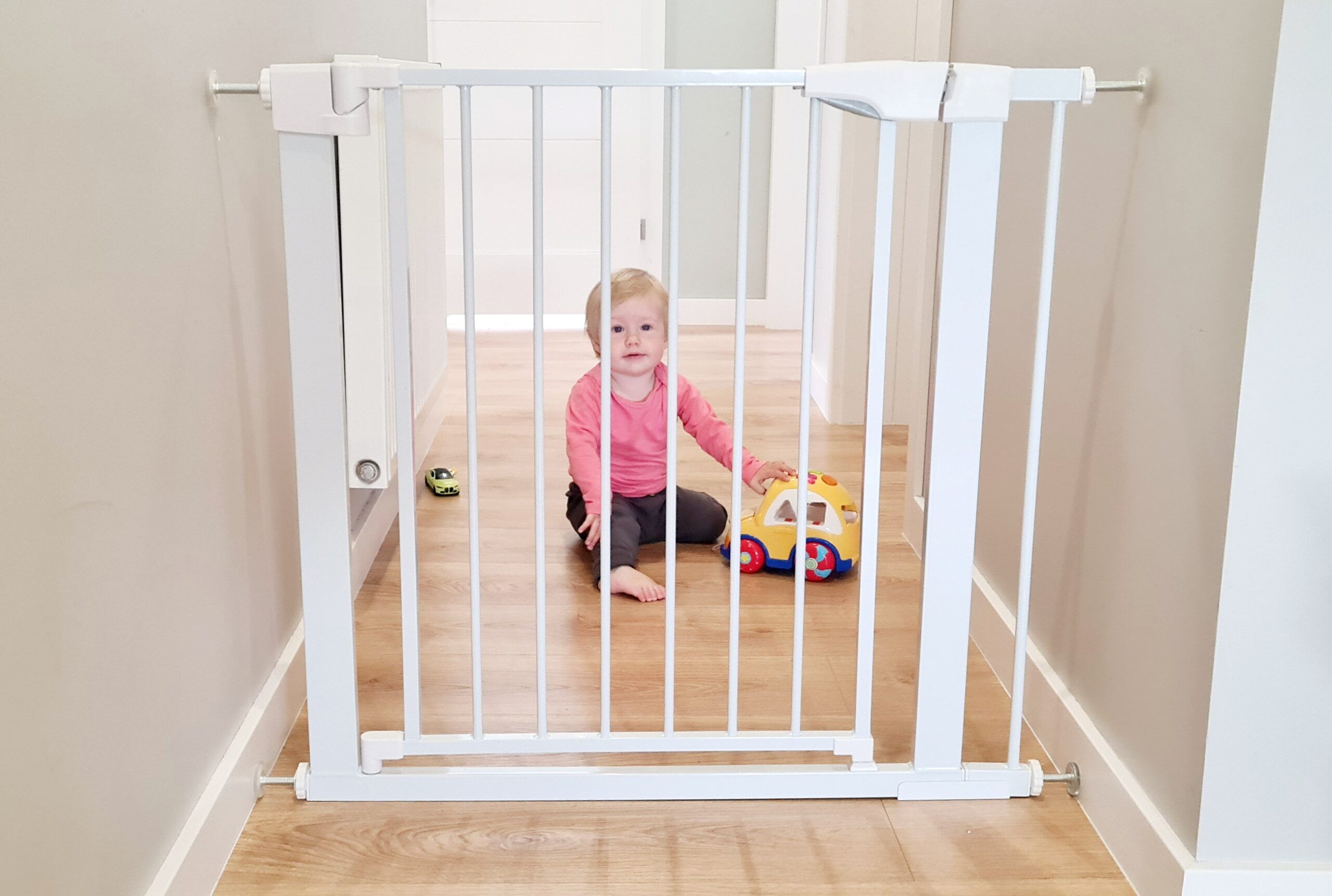 Rozporowa bramka zabezpieczająca schody – bez wiercenia w ścianach. Solidna, uniwersalna konstrukcja z 4 punktami rozporowymi skutecznie chroni dzieci i zwierzęta przed dostępem do schodów, korytarzy i przejść. Wysoka barierka rozporowa wyposażona w automatyczne zamykanie w obu kierunkach oraz podwójny, bezpieczny system ryglowania.
