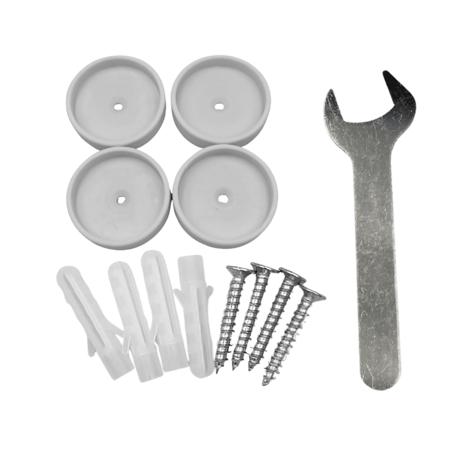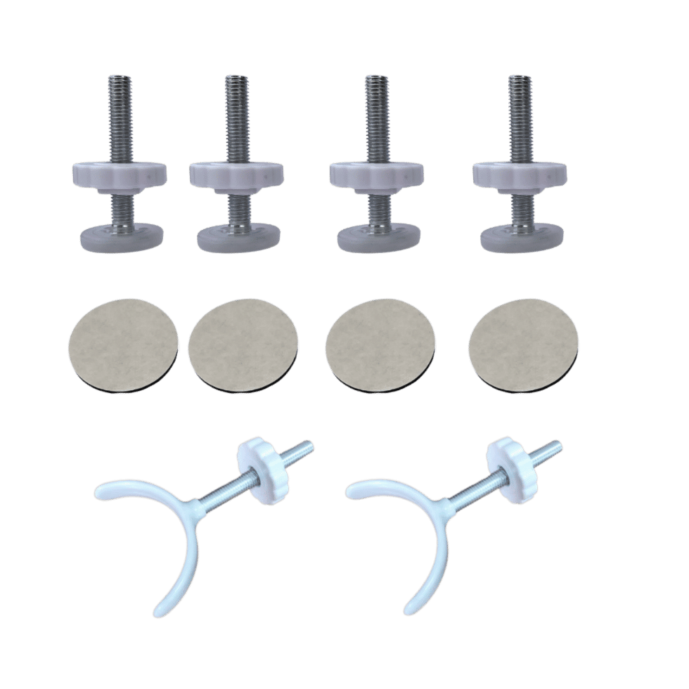 Zestaw mocowań do stabilnego montażu bramki w różnych miejscach. Łatwy montaż i demontaż.