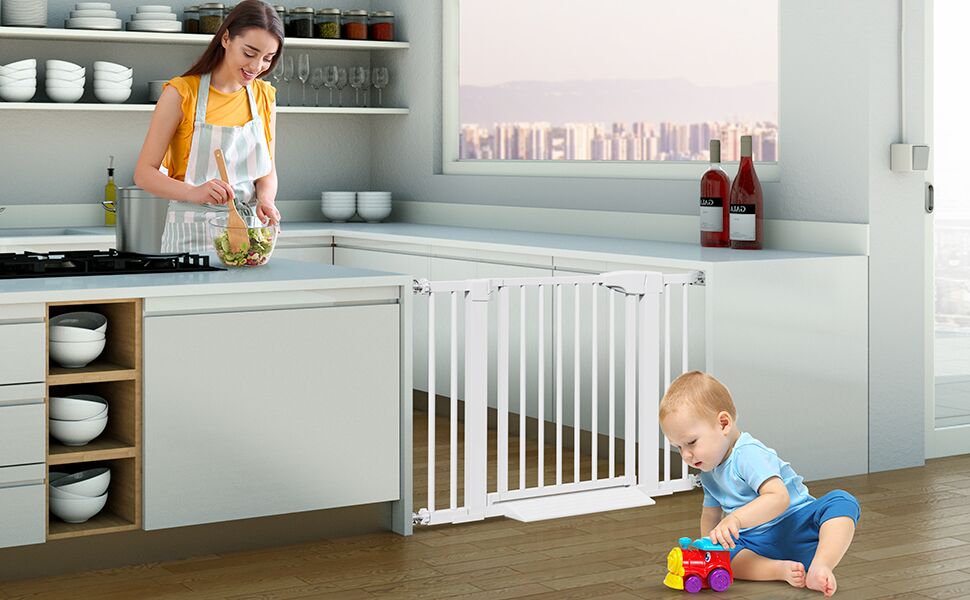 - Wysokość bramki: 76 cm (bramka o podwyższonej wysokości, idealna dla wyższych dzieci i dużych czworonogów)